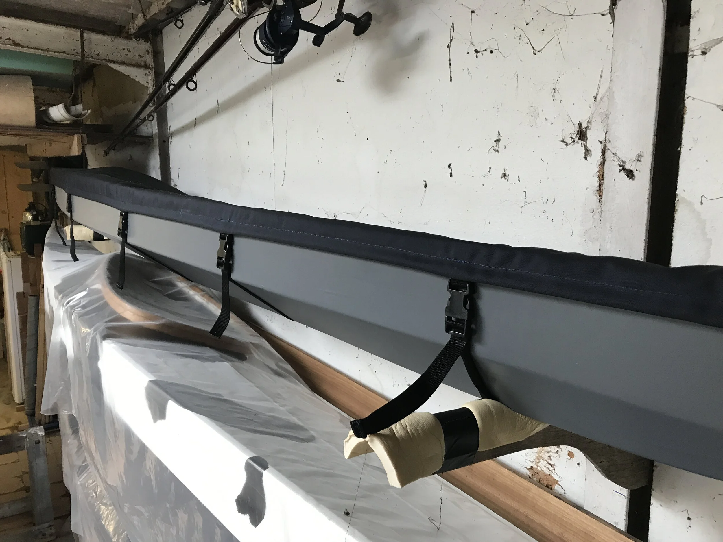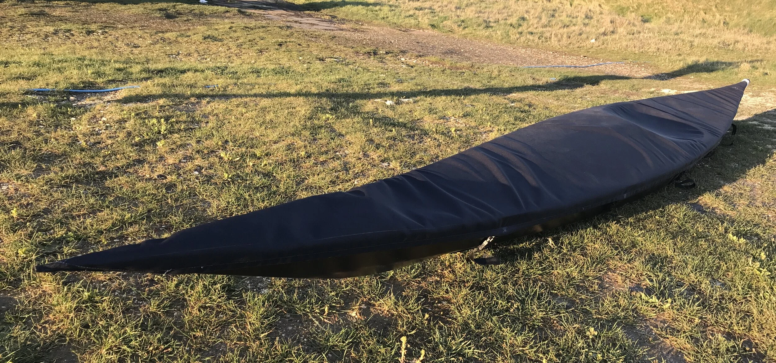 ‘Top Notch’ acrylic canvas Shrike covers with quick release straps, especially made to fit all standard sized Shrike kayak decks. With cord tensioned opening on one end, to accommodate slight variations in hull lengths. Can be made in other colours, on request